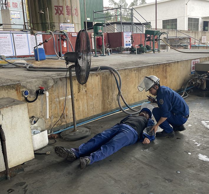 為進一步提高員工安全意識,增強人員觸電、被化學(xué)品灼傷及受限空間的應(yīng)急處置和滅火器實操的能力,結(jié)合公司實際,2024年9月26日下午,海龍化工在化工廠區(qū)進行安全生產(chǎn)應(yīng)急演練。