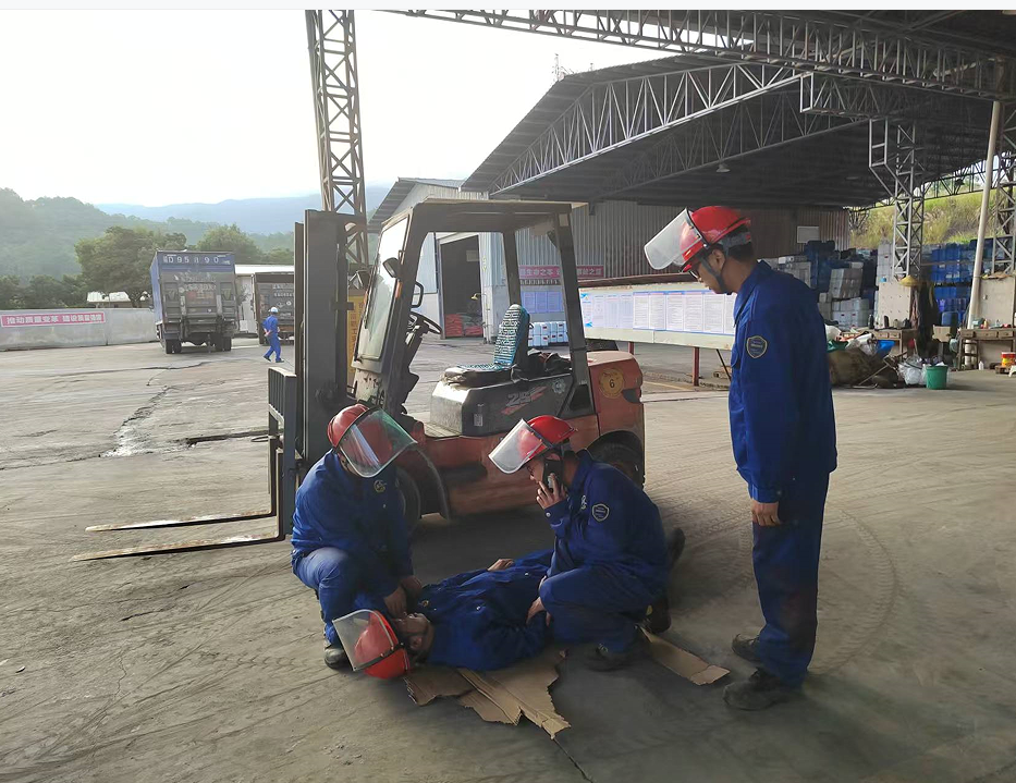 叉車司機王根立即停止作業(yè),并大喊:“撞人了,撞人了”,周邊同事聽到后,迅速過來幫助受傷人員躺平,并上報車間主任,車間主任接報后,立即組織救援人員趕赴現(xiàn)場,查看受傷人員傷勢情況,查看到傷勢比較嚴重,立即組織人員進行簡單包扎處理,簡單處理后,使用擔架抬傷員到公司車輛并送到醫(yī)院就診。